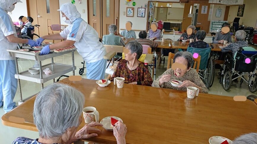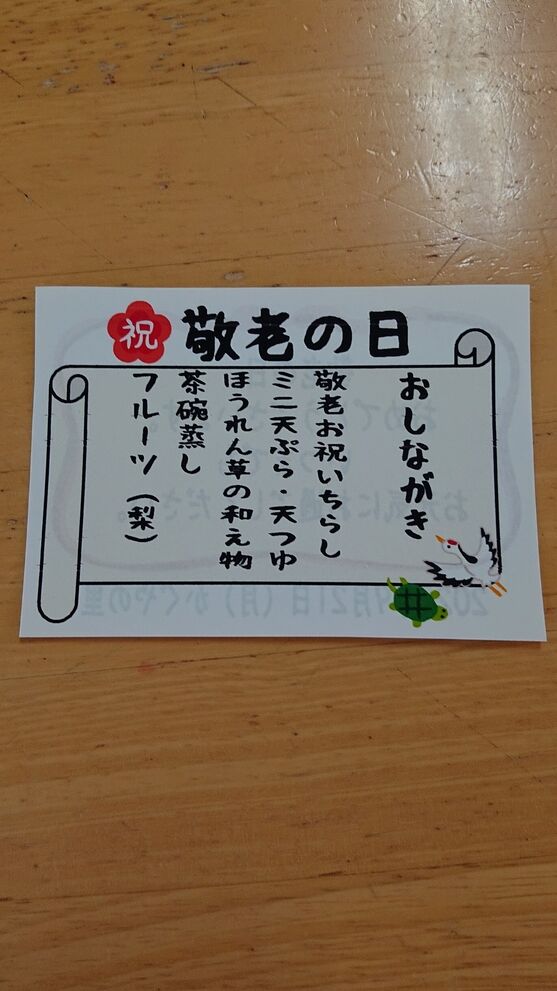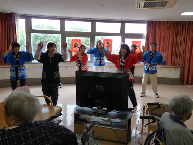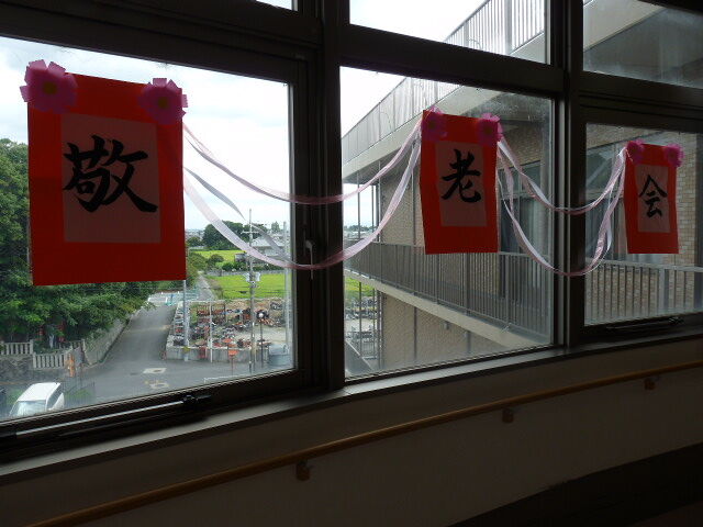 今年の敬老会は、「夢楽らいぶ一座」様にコンサートをして頂く予定でしたが、コロナウイルス感染防止の為に中止し、各フロア内での敬老会に変更いたしました。17日に実施した三階フロアの様子です。二階フロアは、月末に予定しています。