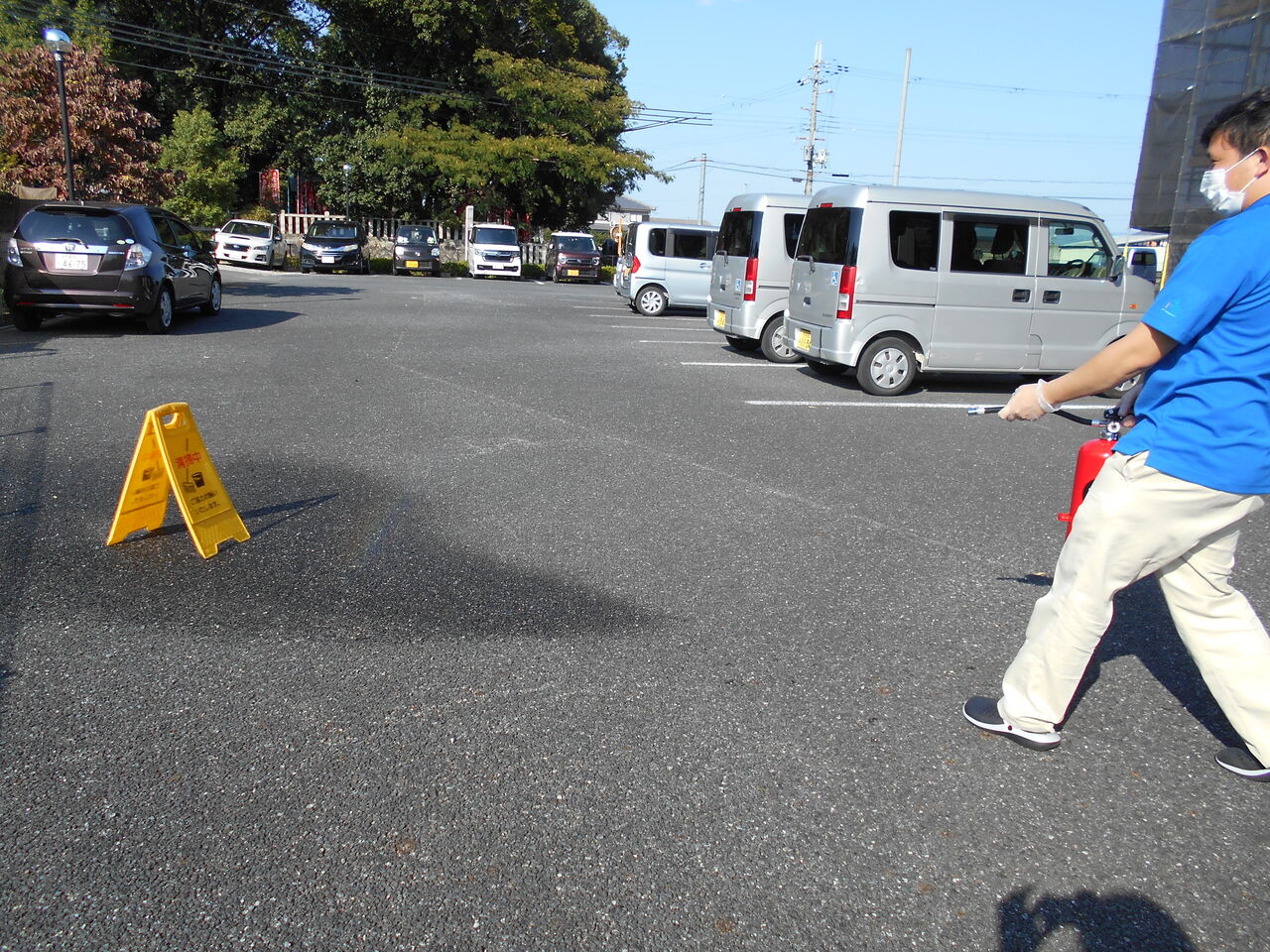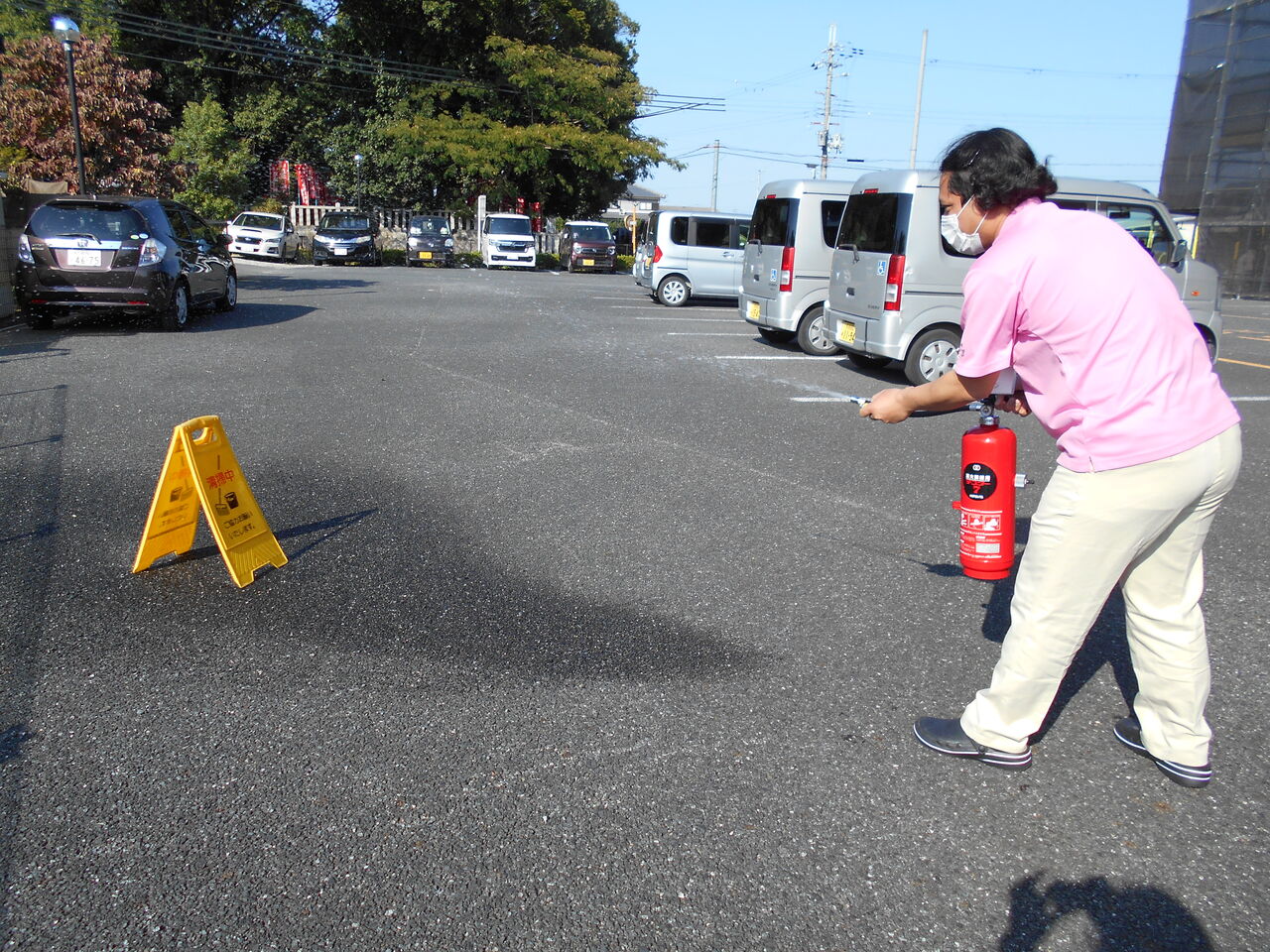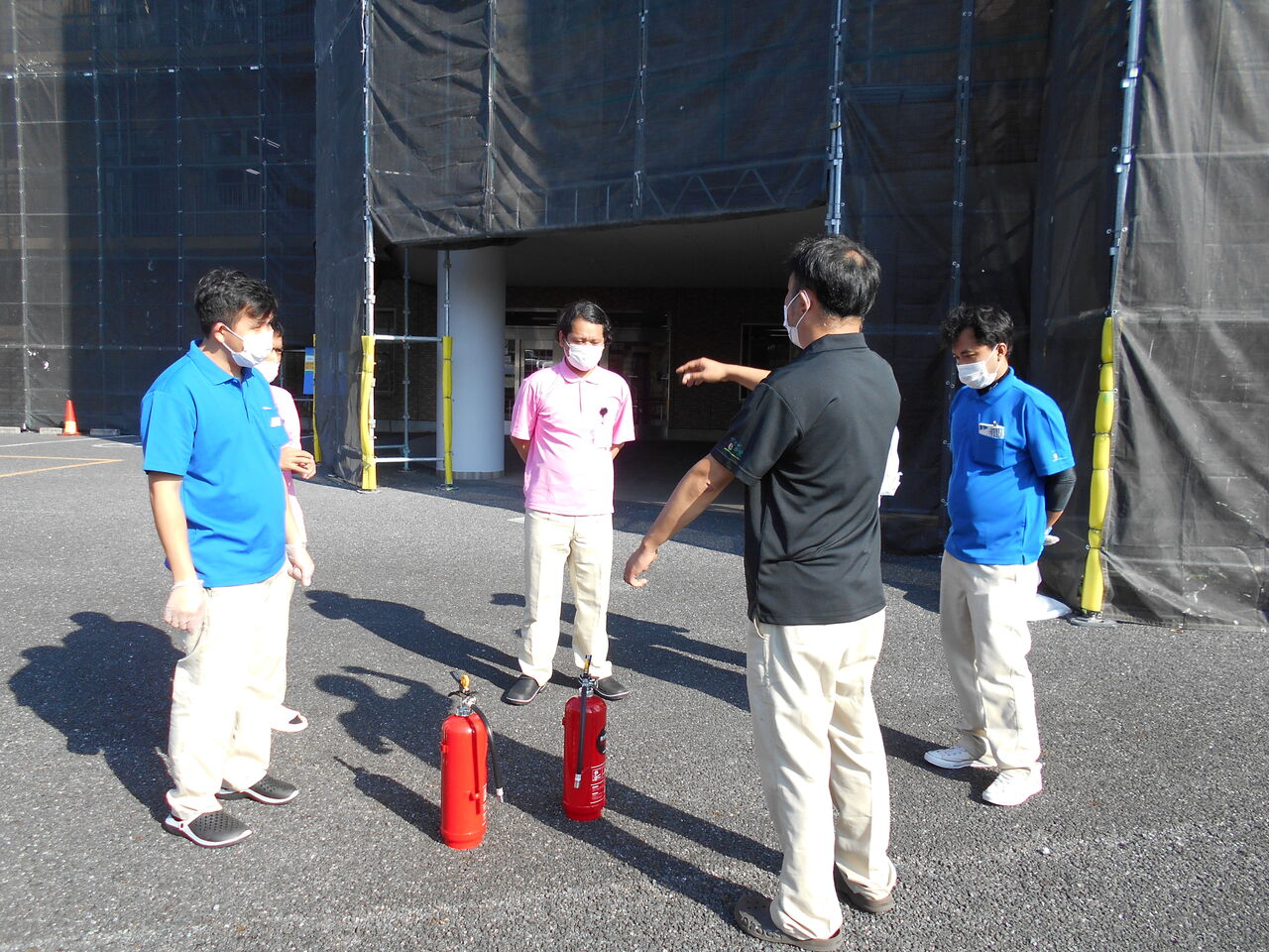18日に避難訓練を実施し、新人職員に消火器訓練も実施いたしました。