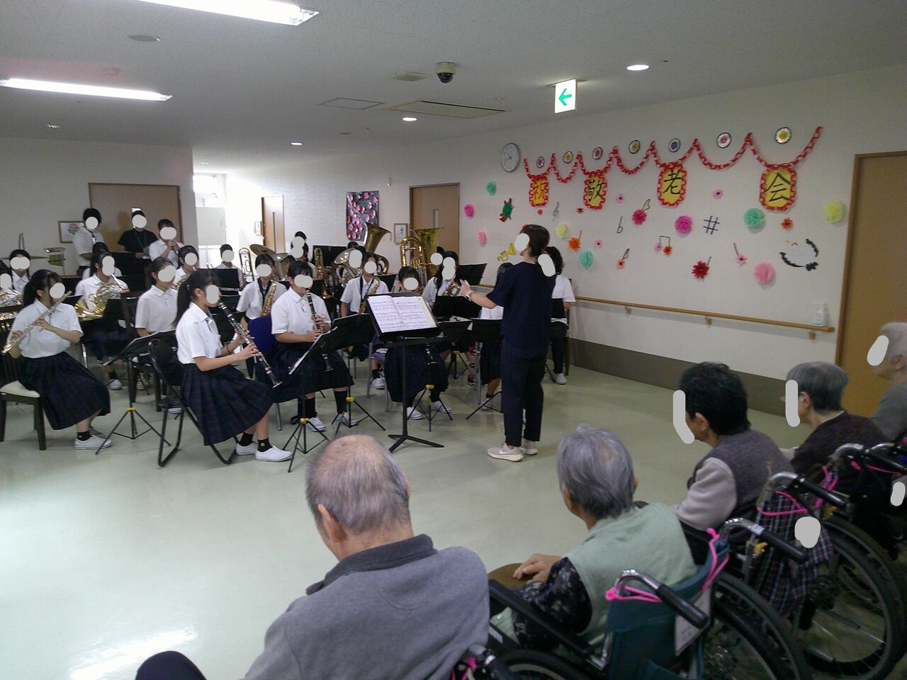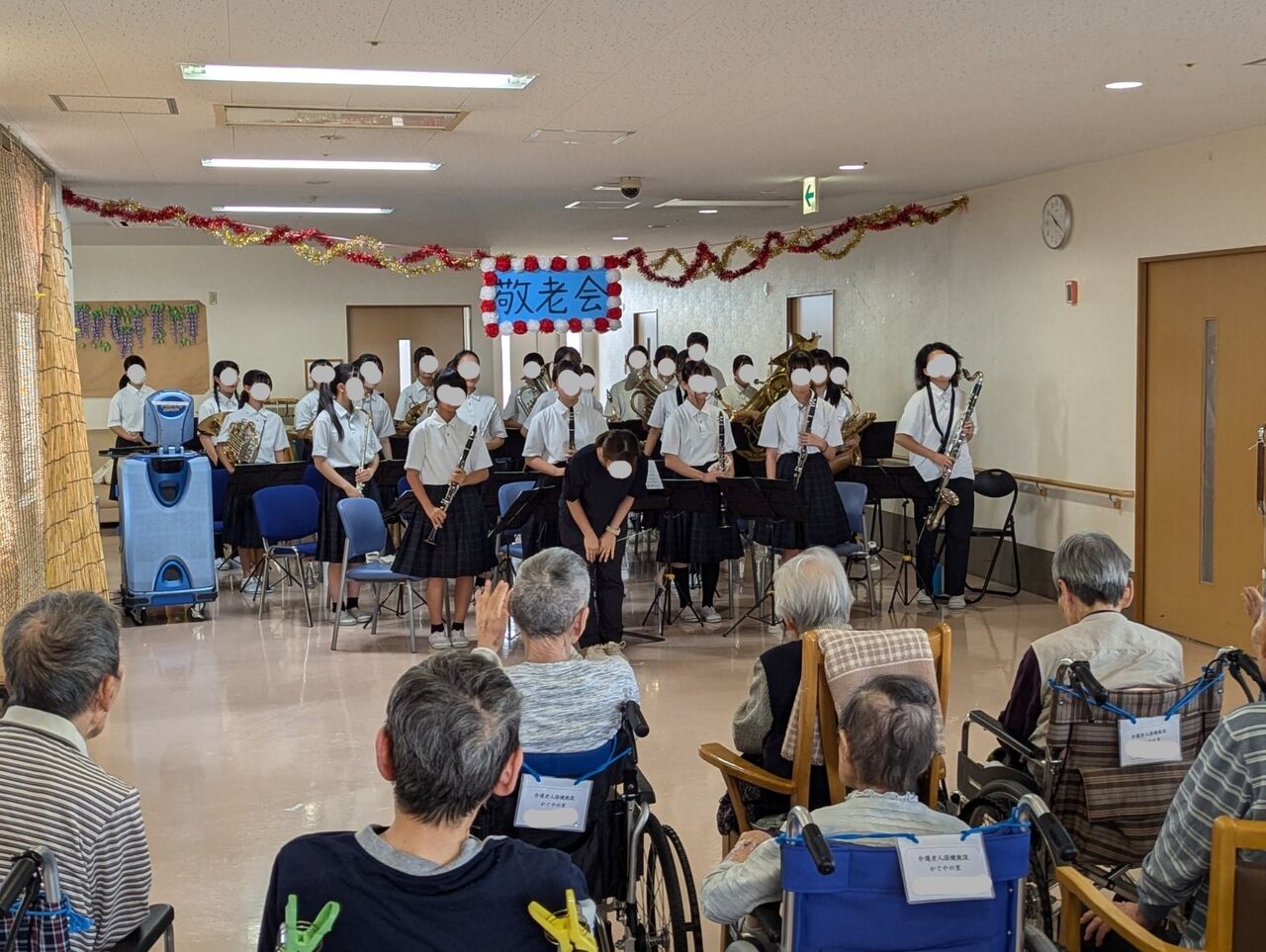 生の演奏は、なかなか機会がなく、また中学生ということで、利用者様の孫、ひ孫世代の方々なので、より喜んでいただけました。